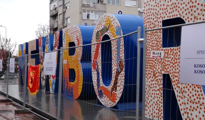 Në monumentin ikonik të pavarësisë së Kosovës, NEWBORN, pas “burgosjes” simbolike me rrethoja hekuri dhe mbishkrimit “Kosova e burgosur” është vendosur mesazh kundër Gjykatës Speciale, e ku disa aktivistë kanë vendosur 5000 emblema magnetike të UÇK-së.