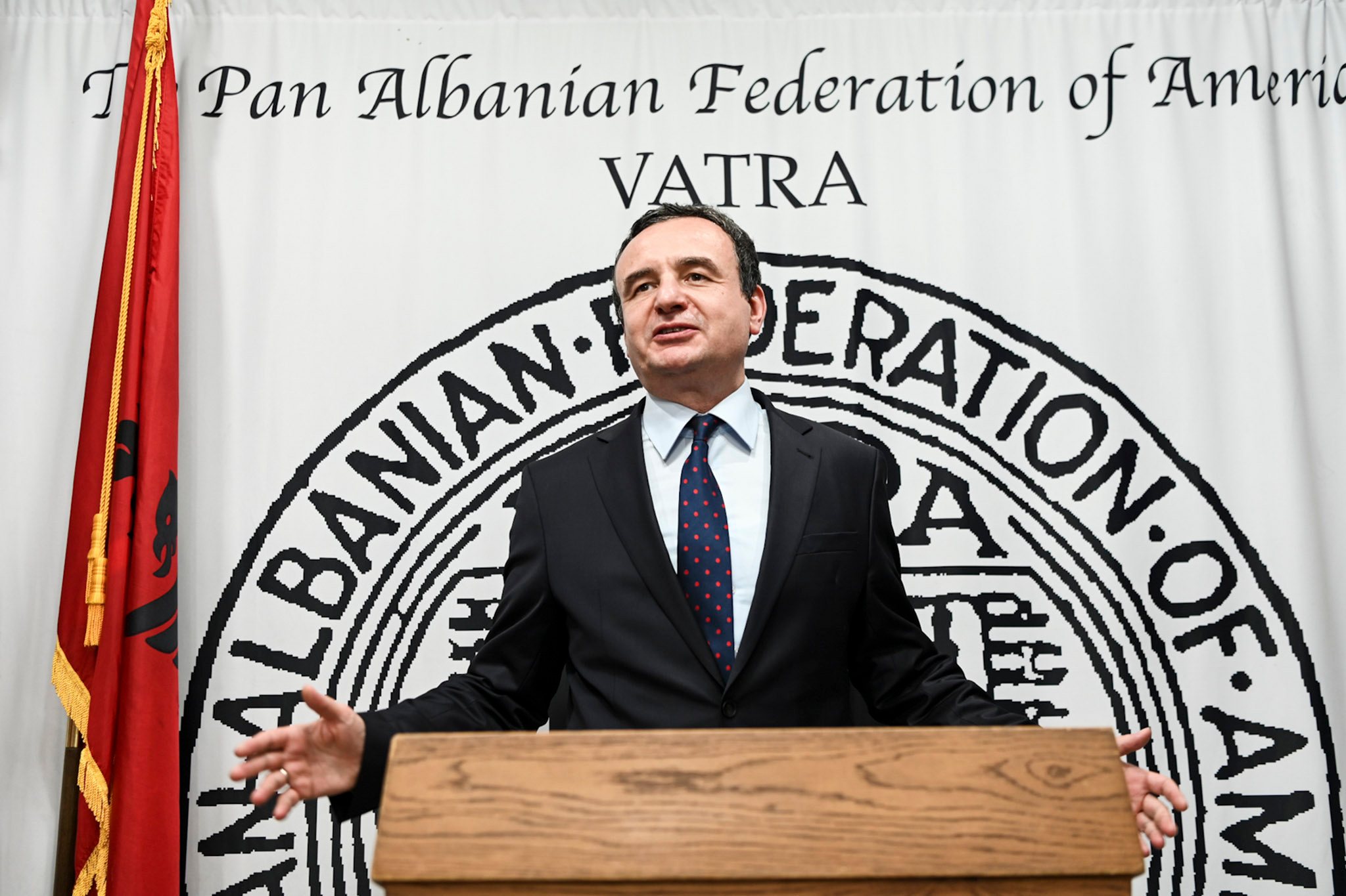 “Faleminderit Federatës Pan-Shqiptare VATRA dhe Shoqatës “PEJA” për pritjen dje dhe për kontributin e tyre të përditshëm”, shtoi tutje Kurti.
