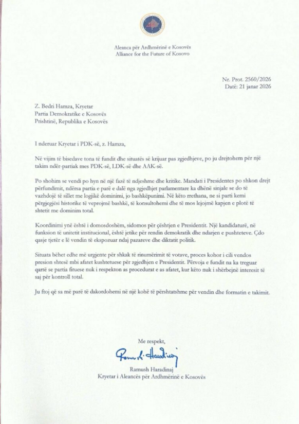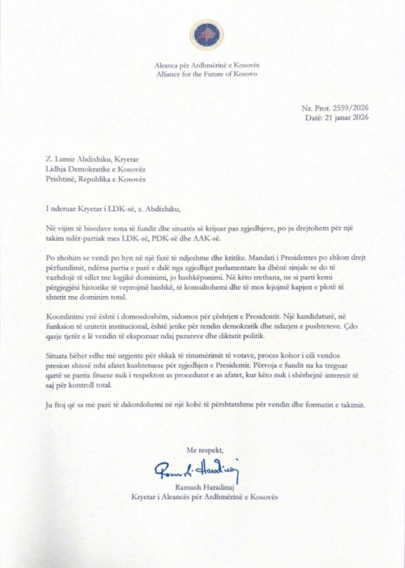 Ramush Haradinaj, për herë të parë ka bërë publike letrat drejtuar Abdixhikut dhe Hamzës, me datë 21 janar të këtij viti, duke kërkuar koordinim për situatën politike sidomos për çështjen e presidentit.