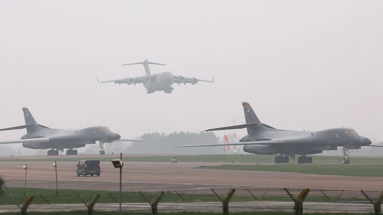 Një aeroplan mallrash Boeing C-17 ulet pas dy bombarduesve B-1 Lancer në imazhet më poshtë.
