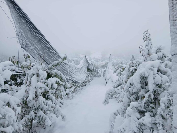 Mëngjesin e sotëm, fshati Zijaq është mbuluar nga një shtresë bore e parakohshme. Fotografitë nga terreni i ka dërguar Gazmend Xhema, i cili herët në mëngjes ka dalë për të parë nëse reshjet kanë shkaktuar dëme në arat e tij të mbjella me pemë, që shtrihen në një sipërfaqe prej afro 8 hektarësh.