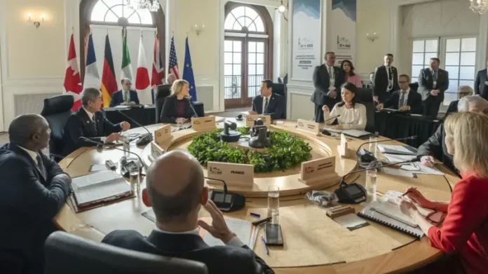 Në ditën e fundit të bisedimeve në Kanada, janë mbledhur ministrat e Punëve të Jashtme të shtatë vendeve që përfshijnë SHBA-në, Britaninë e Madhe, Japoninë, Kanadanë, si dhe fuqitë evropiane me mosmarrëveshje, lidhur me çështjen e formulimit të deklaratës së përbashkët për Rusinë dhe luftën në Ukrainë.