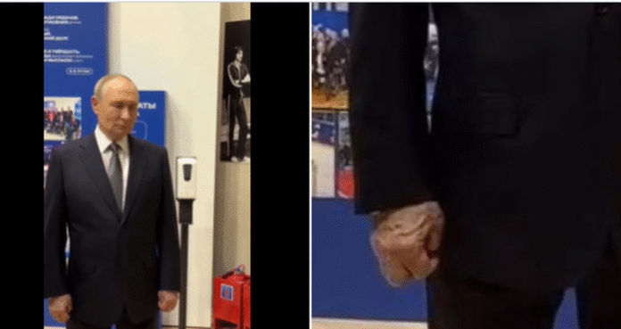 Presidenti rus u pa duke e shtrënguar fort dorën e tij nga sikleti gjatë një eventi ku 73-vjeçari iu drejtua një turme të mbledhur në një fushë basketbolli. Imazhet kanë nxitur spekulime të reja se Putini është rëndë i sëmurë, me detektivët online që pretendojnë se ai mund të vuajë nga sëmundja e Parkinsonit deri te kanceri.