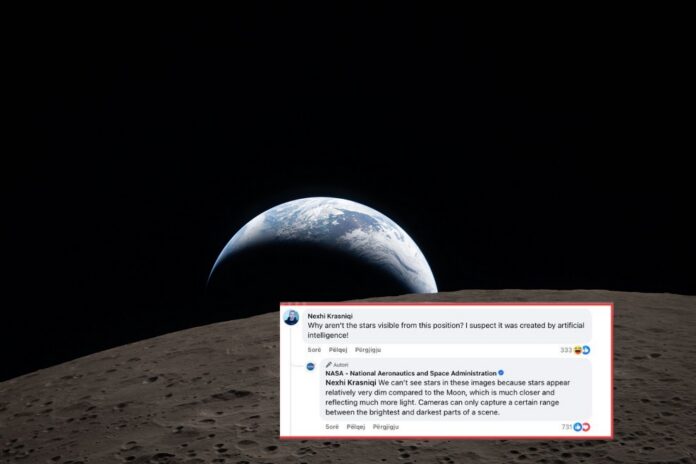 Në një koment në statusin e NASA-s, ai ka pyetur se pse në këto fotografi nuk duken yjet. Sipas tij, fotografitë janë krijuar me inteligjencë artificiale.