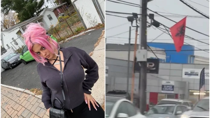 Teksa po bënte një xhiro me makinë, këngëtarja ka filmuar një rrugë të tërë të stolisur me një mori flamujsh kuq e zi me shqiponjën dykrenare, të cilët valviteshin krah flamujve amerikanë.