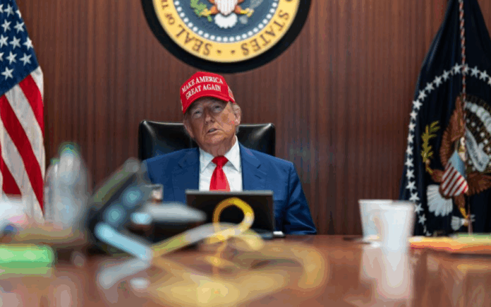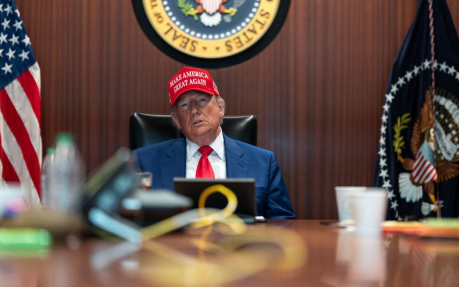 Trump shfaqet me kapele të kuqe “Make America Great Again”, simbol i lëvizjes së tij. Në një prej fotove, Trump qëndron i ulur, i qetë, i rrethuar nga ministrat e tij, duke ndjekur në ekran operacionin kundër tre objekteve iraniane të pasurimit të uraniumit. Në një tjetër foto, ai është në këmbë, pranë shefit të shtabit të përbashkët Dan Caine, i cili flet me Susie Wiles, shefen e stafit të Shtëpisë së Bardhë.