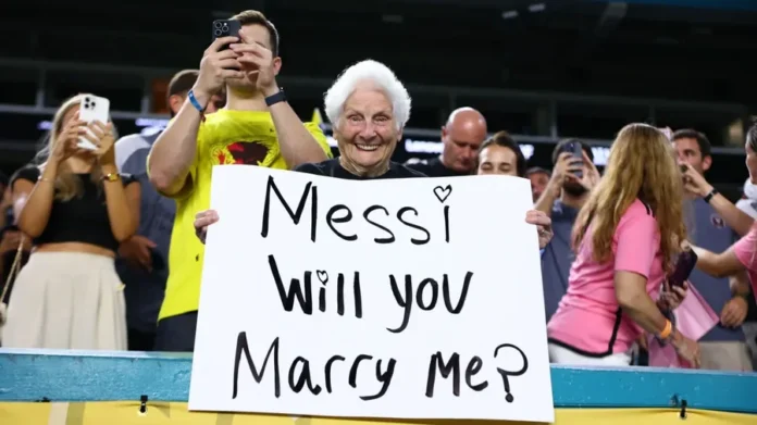 Një tifoze e moshuar kishte shpalosur një banderolë me mesazhin: “Messi, a do të martohesh me mua?”, duke provokuar komente të ndryshme, por edhe momente të bukura në periferi të garës së sapokrijuar të FIFA-s.
