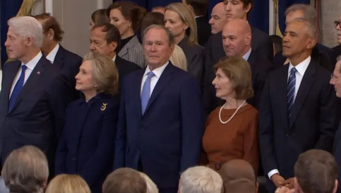 Ndërkohë, Bill Clinton dhe George Bush u panë të shoqëruar nga bashkëshortet e tyre.