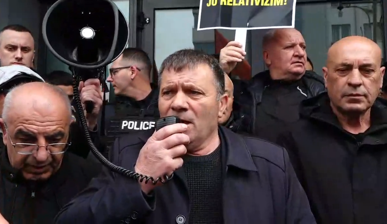 Protesta e veteranëve po mbahet për të kundërshtuar ekspozitën që u vendos në sheshet e Prishtinës e që pasqyroi me pasaktësi masakrat e kryera nga Serbia në Kosovë.