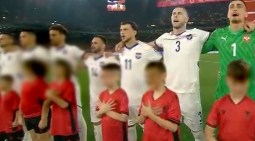 “Disa fëmijë që qëndronin pranë futbollistëve serbë shfrytëzuan momentin kur po këndohej himni për të formuar me duart e tyre simbolin e shqiponjës dykrenare shqiptare.