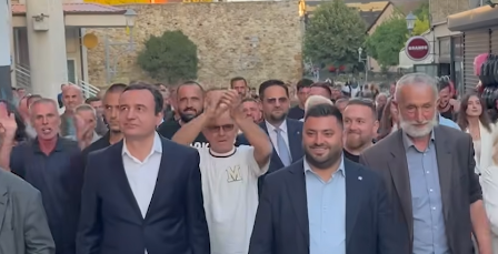 Ecja e tij nëpër sheshin e qytetit u përcoll me emrin e ish presidentit të Kosovës, Hashim Thaçi, i cili ndodhet në paraburgim në Hagë.