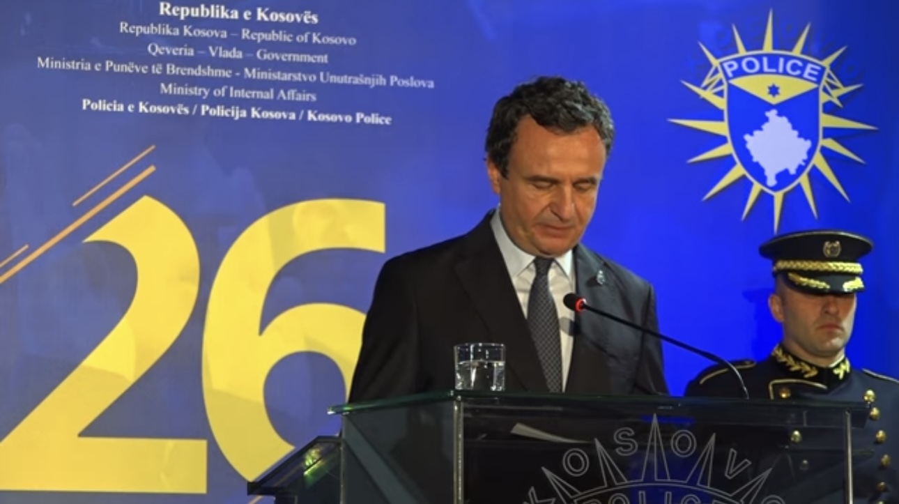 Kryeministri në detyrë, Albin Kurti, në fjalën e tij gjatë ceremonisë së 26-vjetorit të themelimit të Policisë së Kosovës, ka veçuar punën e Policisë në veri të vendit.
