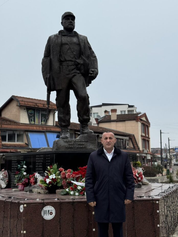Në 27-vjetorin e rënies së komandant Mujë Krasniqi “Kapuqi” dhe bashkëluftëtarëve të tij, ish-gjenerali i UÇK-së, Lahi Brahimaj, ka bërë homazhe pranë shtatores së heroit, duke nderuar jetën dhe veprën e tij.