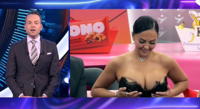 Megjithatë, një moment spontan gjatë bisedës mori vëmendjen e të gjithëve. Teksa po fliste, Edisa vendosi duart te gjoksi dhe e tërhoqi fustanin për ta rregulluar.