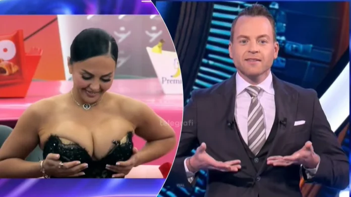 Megjithatë, një moment spontan gjatë bisedës mori vëmendjen e të gjithëve. Teksa po fliste, Edisa vendosi duart te gjoksi dhe e tërhoqi fustanin për ta rregulluar.