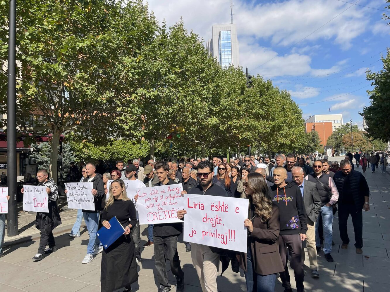 Protestuesit marshuan nëpër sheshin e kryeqytetit duke mbajtur pankarta dhe duke bërë thirrje “Liri për Arbnorin” dhe “Kërkojmë drejtësi për Arbnorin”.