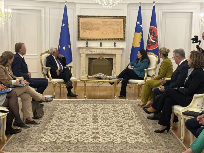 Presidentja e Kosovës, Vjosa Osmani, ka mirëpritur sot në Prishtinë presidentin e Këshillit Evropian, Antonio Costa, i cili po qëndron për vizitë zyrtare në vendin tonë.