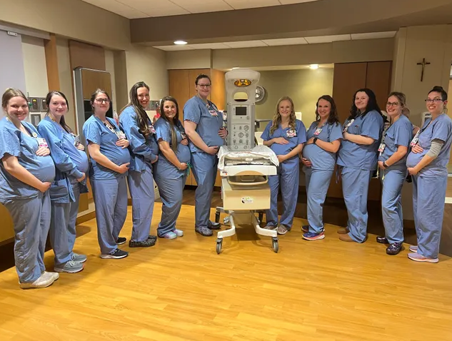 Një ngjarje e rrallë dhe e jashtëzakonshme ka ndodhur në qendrën e grave dhe foshnjave të spitalit HSHS St. Vincent në Green Bay, Wisconsin të Shteteve të Bashkuara, ku 14 infermiere janë shtatzënë në të njëjtën kohë.