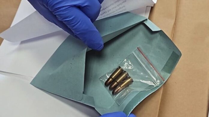 “Gjatë kontrollit të sigurisë me pajisje me rreze X, në zarf u gjetën tre plumba”, thuhet në komunikatën e MUP-it.