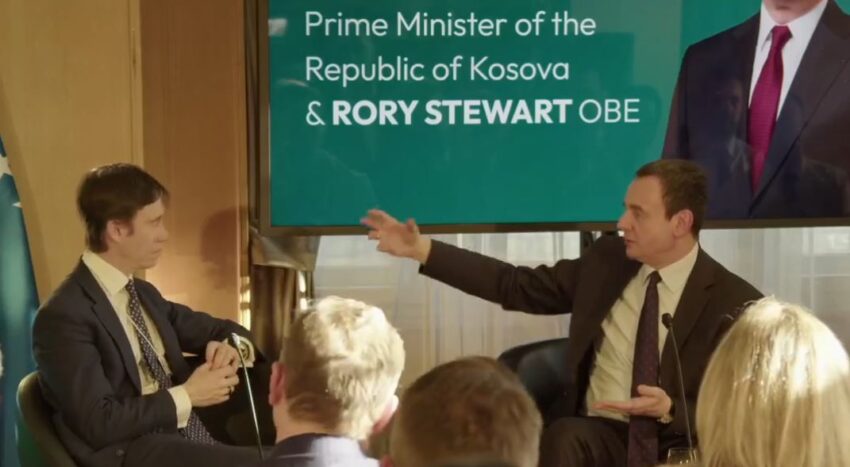 Kryeministri në detyrë Albin Kurti, ka folur për qeverisjen e tij të deritanishme dhe planet ekonomike, politike e gjeo-strategjike në udhëheqjen e ardhshme, në një bisedë bashkë me Rory Setwart OBE në Shtëpinë e Kosovës në kuadër të Forumit në Davos.