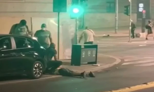 Një video nga Serbia është postuar në rrjetet sociale që tregon njerëz të afërt me shtetin serb duke zvarritur një të ri, dhe më pas njëri prej tyre e godet me shkop në shpinë.