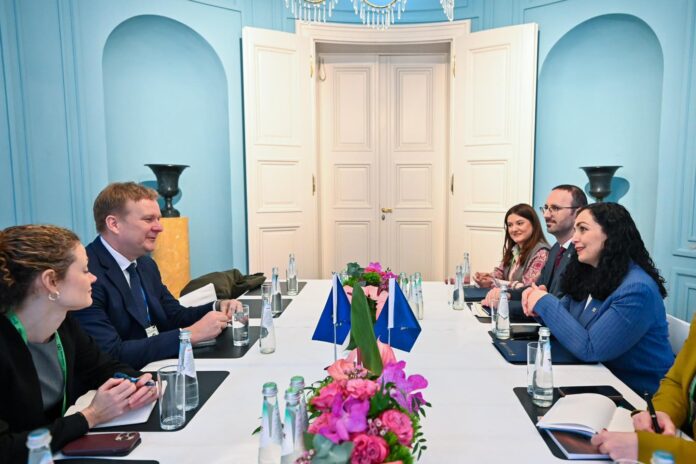 “Në takimin tim të parë me përfaqësuesin e ri të BE-së për bialog, Peter Sorensen, diskutuam mbi zhvillimet e fundit në vend dhe pritshmëritë nga dialogu i Brukselit. Do të vazhdojmë të punojmë me aleatët tanë që ky proces të përmbyllet me njohje të ndërsjellë dhe mbrojtjen e sovranitetit, kushtetutshmërisë dhe integritetit territorial të Republikës sonë”, ka shkruar Osmani në Facebook.