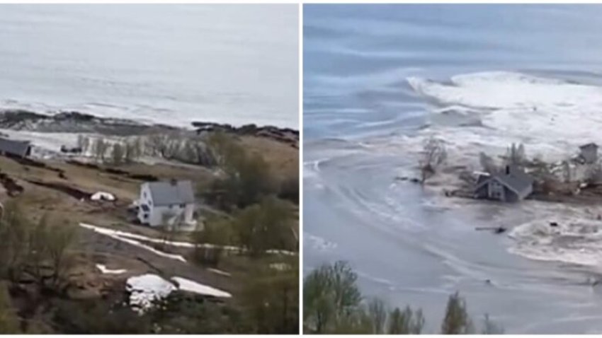 Një ngjarje dramatike ndodhi në Norvegji, ku një rrëshqitje masive dheu përfshiu një sipërfaqe toke të madhe, me përmasa rreth 100 mijë metra katrorë – e barabartë me rreth 14 fusha futbolli – duke e zhytur atë në det.