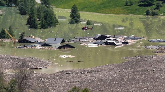 Lumi Lonza u bllokua nga masat e mëdha të dheut të rrëshqitur dhe u kthye në një liqen që përpiu shtëpi.