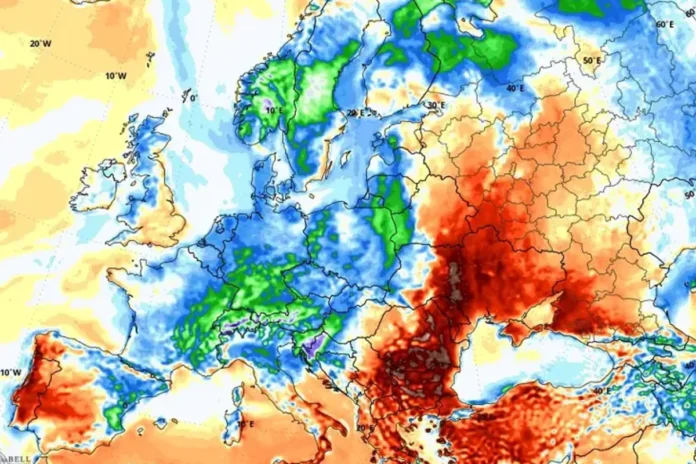 Një anticiklon i fortë në Ishujt Azore pritet të hënën, së bashku me një sistem të presionit të ulët në shkallë të gjerë mbi Evropën veriore dhe qendrore. Mbetjet e valës së të nxehtit do të lëvizin drejt lindjes në Evropën Lindore dhe rajonin e Detit të Zi deri në mesin e javës së ardhshme.