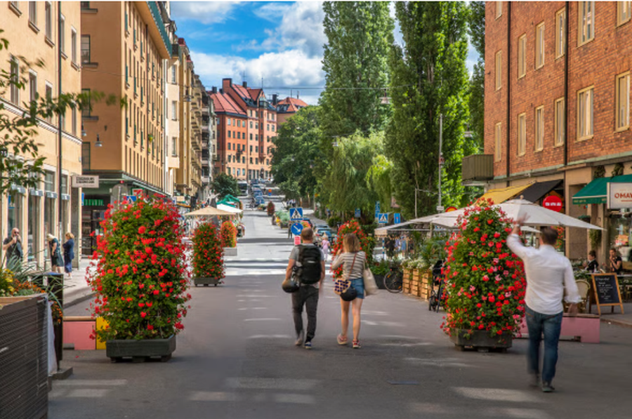 Në vend që të imponojë ndryshime të përhershme menjëherë, skema e qytetit për këmbësorët, Living Stockholm, i bën rrugët e zgjedhura pa makina për periudha të caktuara kohore, zakonisht në verë, kur vendasit janë të etur të shijojnë natyrën. Është një strategji që i ka ndihmuar banorët të pranojnë idenë se hapësirat publike të rezervuara për drejtim dhe parkim mund të përdoren për shumë më tepër.