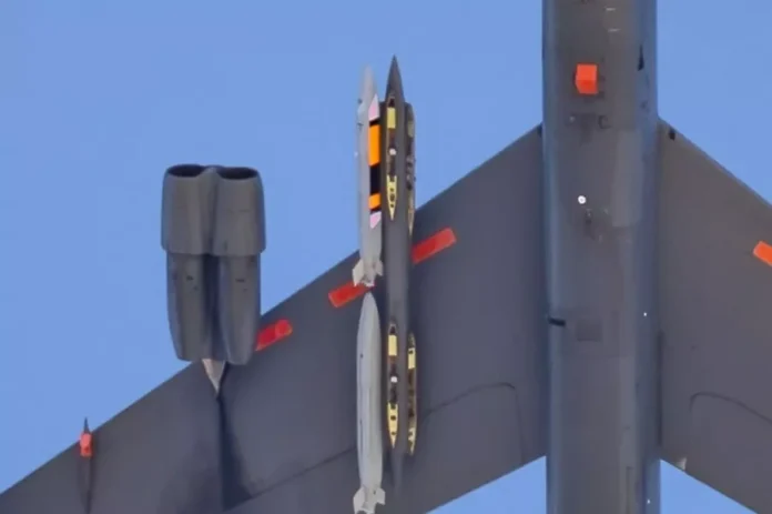 Një vëzhgues aeroplanësh kapi ato që mund të jenë fotot e para të kësaj rakete bërthamore të fuqishme të gjeneratës së ardhshme, të fiksuar në krahun e një bombarduesi me rreze të gjatë veprimi B-52. Imazhet e tij mahnitëse duket se tregojnë një raketë bërthamore amerikane “sekrete” që shkatërron qytete.