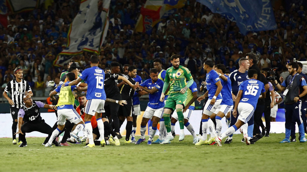 Pastaj pati kaos total në fushë dhe një sherr të përgjithshëm midis lojtarëve, të gjitha pas duelit midis portierit të Atletico Mineiro dhe sulmuesit të Cruzeiro.