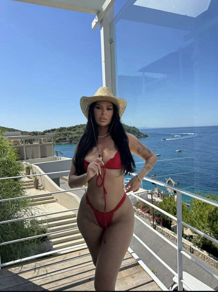Influencuesja shqiptare ka publikuar disa fotografi në Instagram, ku shfaqet e veshur me bikini të kuqe dhe një fustan rrjete transparent, që thekson linjat trupore. Pamjet kanë marrë dhjetëra mijëra pëlqime dhe komente, duke nxitur reagime të shumta në rrjet.