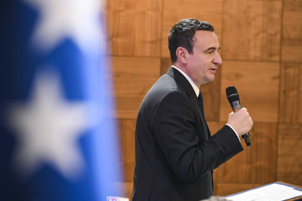 Kurti, dje mirëprit në Institutin Mbretëror të Shërbimeve të Bashkuara në Britani, ku mbajti fjalë hyrëse dhe diskutoi mbi sigurinë, zhvillimin dhe solidaritetin me Ukrainën.