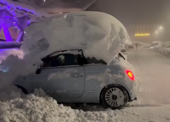 Pamjet e shpërndara në rrjetet sociale tregojnë ndërtesa dhe automjete të mbuluara krejtësisht nga bora, ndërsa shërbimet lokale paralajmërojnë për rrugë të bllokuara dhe rrezik të lartë orteku.