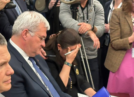 Mediat kanë kapur momentin kur ajo kap kokën gjatë kohës që të tre liderët diskutonin mes vete me tone mjaftë të ashpra.