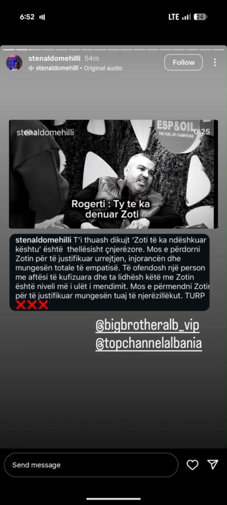 Familjarët e Stenaldos, të cilët menaxhojnë llogarinë e tij të Instagramit, kanë bërë një reagim publik duke dënuar rëndë gjuhën e përdorur.