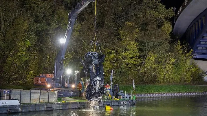 Shoferi i një BMW me targa të Mynihut të Gjermanisë, në autostradën A2 injoroi shenjën e ndalimit të policisë dhe u largua me shpejtësi, duke rënë kështu me veturë në Kanalin Mittelland.