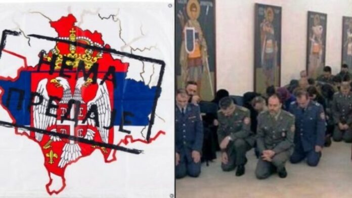 Prania e ushtarëve në uniformë brenda një hapësire të tillë tregon për një përzierje të thellë mes institucioneve shtetërore (ushtria) dhe Kishës Ortodokse Serbe.